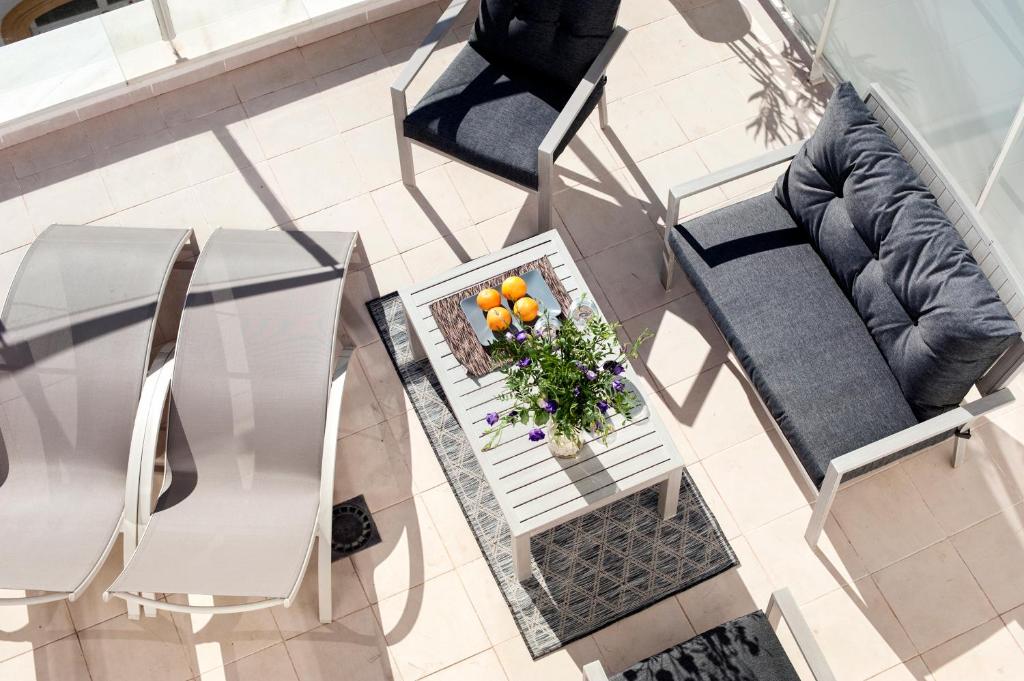 Decoración moderna y funcional inspirada en los valores clásicos de la decoración del Sur. En una de las calles peatonales con mayor diversidad de comercios, junto al enclave de la Plaza del Salvador. Cada apartamento tiene a una flor o planta típica sevillana como protagonista.