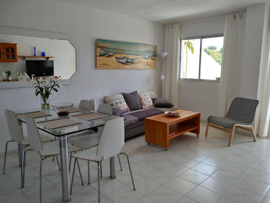 El luminoso, ampio, 2 camere, WiFi ofrece vistas al mar y alojamiento con terraza y cafetera a unos 100 metros de la playa de Costa Calma. El establec