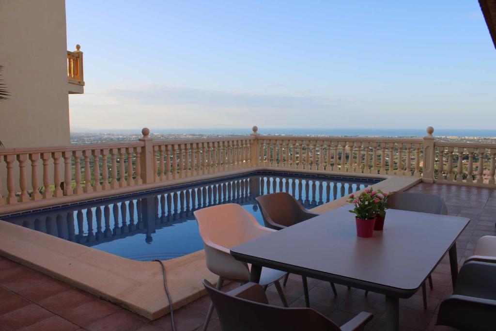 El Nice villa beautiful view se encuentra en Pedreguer y ofrece alojamiento con aire acondicionado, piscina privada, vistas al jardín y patio. Ofrece