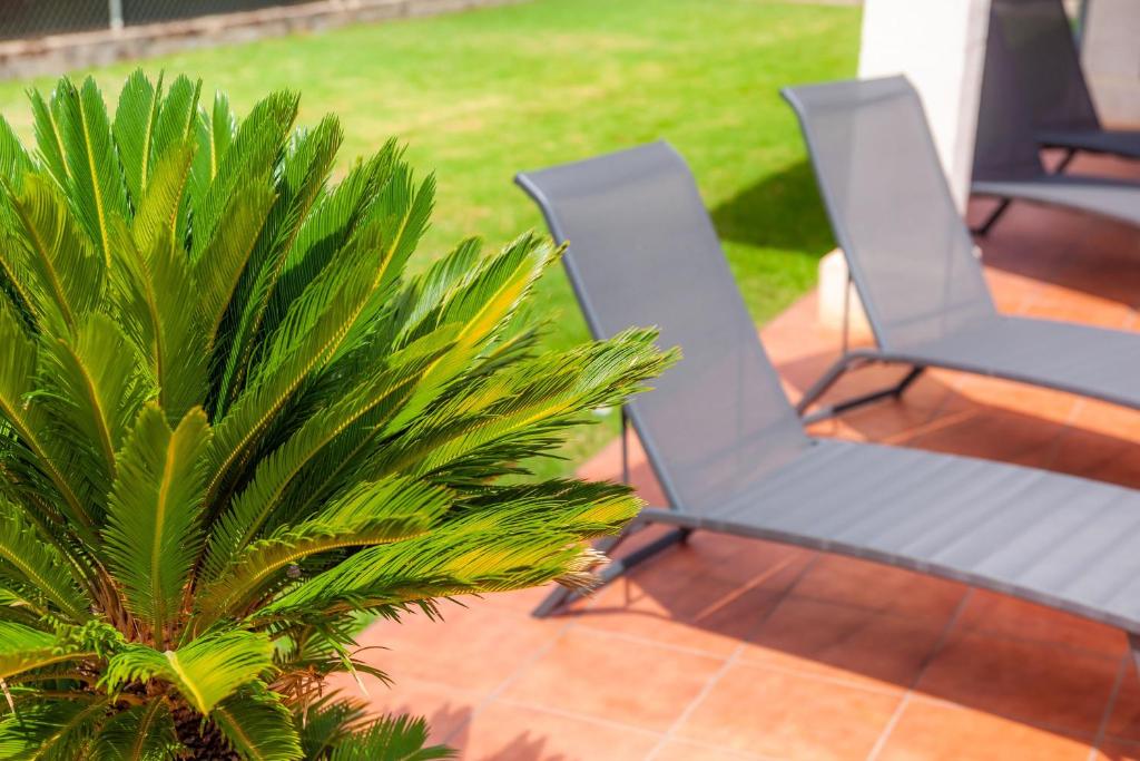 La villa está equipada con 2 dormitorios, TV vía satélite y cocina totalmente equipada con microondas, nevera, lavadora, fogones y tostadora.