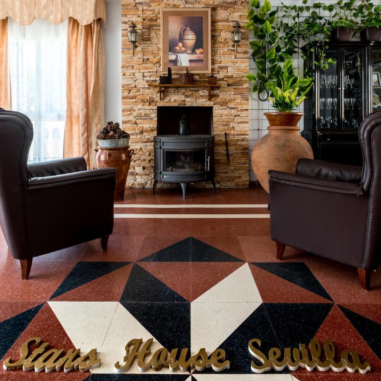 La plaza de Armas se encuentra a 13 km de la casa, mientras que el palacio del Alcázar está a 14 km. El aeropuerto más cercano es el de Sevilla, ubicado a 20 km del "Stars House Sevilla" Villa con piscina privada a 10 min de Sevilla.