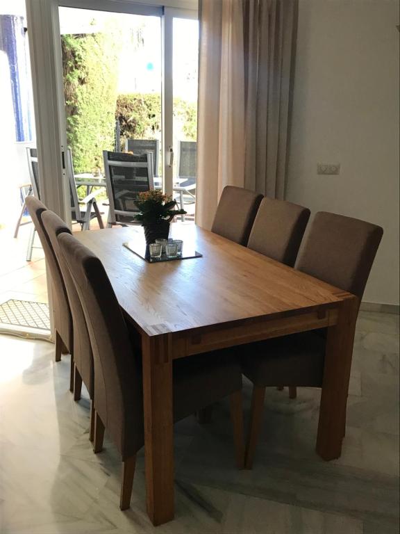 El apartamento cuenta con 3 dormitorios, 2 baños, ropa de cama, toallas, TV de pantalla plana vía satélite, zona de comedor, cocina totalmente equipada y patio con vistas a la piscina.