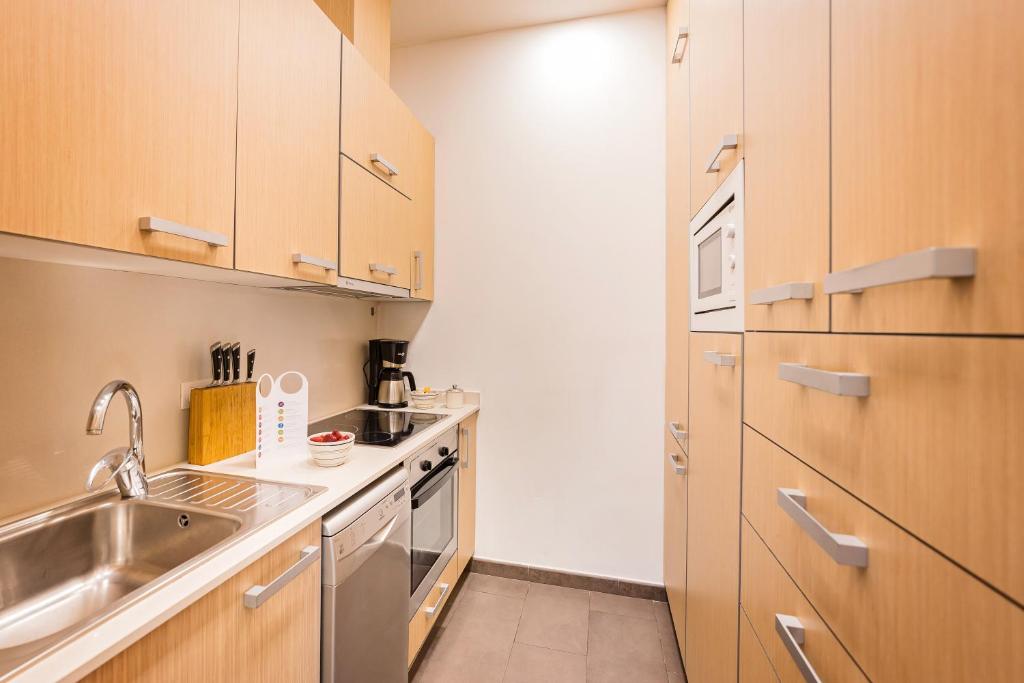 El apartamento cuenta con balcón, vistas a la ciudad, zona de estar, TV de pantalla plana, cocina totalmente equipada con nevera y horno y baño privado con bañera y artículos de aseo gratuitos. Hay lavavajillas, microondas, fogones, cafetera y hervidor de agua.