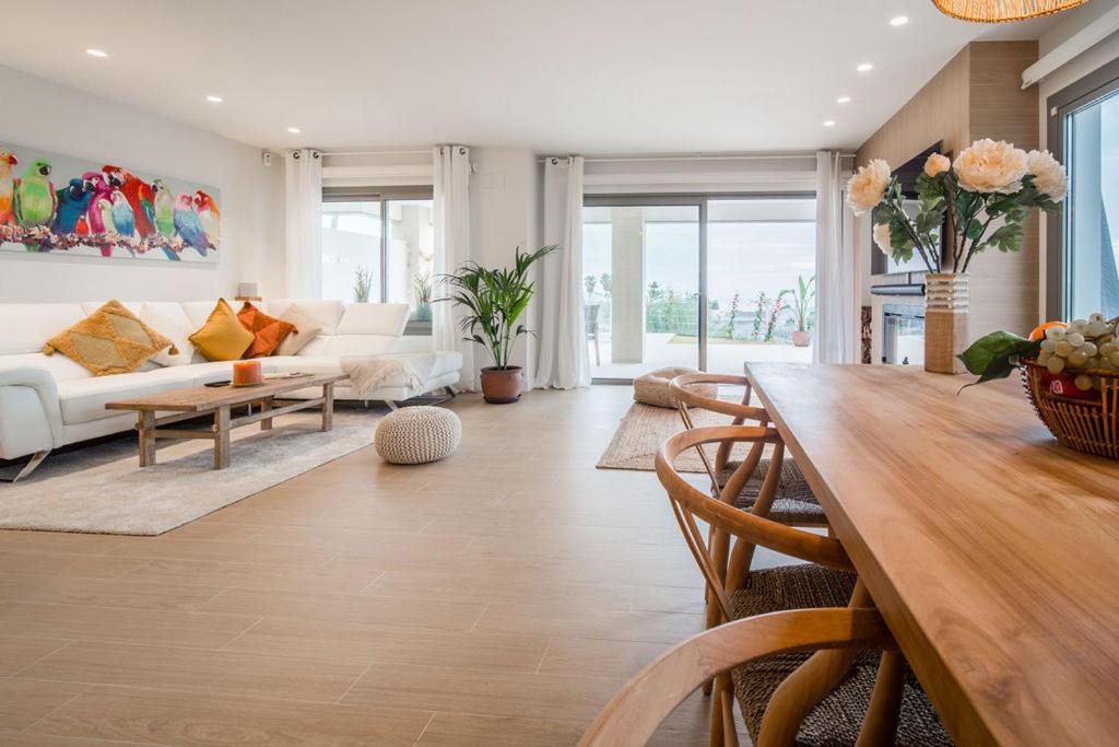 Casa Carolina in Higueron - Sunshine Villa with jacuzzi and pool se encuentra a 12 km de Puerto deportivo de Benalmádena y ofrece alojamiento en Mijas con acceso a una bañera de hidromasaje. Este alojamiento con aire acondicionado está a 4,6 km de Plaza de España y ofrece wifi gratis y parking privado en el propio alojamiento. La casa o chalet cuenta con terraza y vistas al mar, y dispone de 3 dormitorios, una sala de estar, TV de pantalla plana, una cocina equipada y 3 baños con ducha y bañera de hidromasaje. Hay toallas y ropa de cama en la casa o chalet. Se puede practicar senderismo o ciclismo, ir a la piscina al aire libre, disfrutar de un momento de relax en el jardín o usar la zona de barbacoa. Museo Automovilístico y de la Moda está a 23 km del alojamiento, y Campo de Golf La Cala está a 24 km. El aeropuerto más cercano (Aeropuerto de Málaga) está a 22 km.