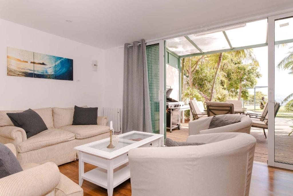 La villa está equipada con 2 dormitorios, 3 baños, ropa de cama, toallas, TV de pantalla plana vía satélite, zona de comedor, cocina totalmente equipada y patio con vistas al jardín.