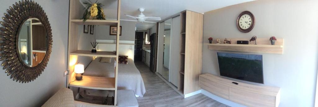 El Torres del Sol está situado frente a la playa de Playa de las Américas, cerca de la playa de Las Vistas, y cuenta con zona de playa privada. Hay aparcamiento privado y WiFi gratuita en todas las instalaciones. El apartamento cuenta con 1 dormitorio, 1 baño, ropa de cama, toallas, TV de pantalla plana con servicios de streaming, zona de comedor, cocina totalmente equipada y terraza con vistas al jardín. El personal de la recepción está disponible las 24 horas. El Torres del Sol alberga una piscina al aire libre abierta todo el año. El establecimiento ofrece servicio de alquiler de coches y bicicletas. En las inmediaciones se puede practicar senderismo. Cerca del Torres del Sol hay varios lugares de interés, como la playa Camison, la playa Los Cristianos y el centro de convenciones Pirámide de Arona. El aeropuerto más cercano es el de Tenerife Sur, ubicado a 18 km del apartamento.
