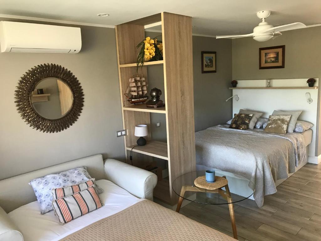 Contras: The pool and rude staff ! Whilst being on holiday id expect my daughter to be able to use a float in the swimming pool but kids aren’t allowed them . The lady who collects the money round the pool is one of the rudest people I have ever spoken to! No explanation as to why kids weren’t allowed them she just smirked and took them off the kids . Half the time the pool wasn’t even open until 11AM which again when on holiday is ridiculous . Especially when your having to get up early wait at the door for it to be opened at 10AM for them to turn around and say it’s doesnt open until 11AM today . No sign , nothing ! I even got shouted at by a Spanish cleaning lady for even standing at the pool door which again when I’m on holiday I do not expect to be shouted at ! Lady on reception also very rude . There are no umbrellas around the pool area .There was one in the apartment which was great but your expected to go and provide your own base ...again never experienced anything like it . The beds around the pool were also broken . I was paying 1€ a day to sit on a broken chair . Last thing to add is there is an atmosphere around the pool . We spoke to a few English regulars there who said it was like it every year but this year was the worst they’d seen it in terms of atmosphere and things you can and cannot do . Felt like I was still in school a lot of the time . When I’m on holiday with my family I like to feel relaxed ....and I didn’t . Overall fab holiday and great room just the place itself is not for families who like fun when away .
