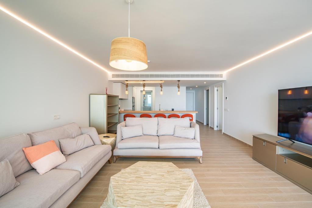 El Unique 2 bedroom unit with pool near beach se encuentra frente a la playa de Fuengirola y ofrece piscina privada. El alojamiento está a 500 metros de la playa de Carvajal y cuenta con aire acondicionado, aparcamiento privado y WiFi gratuita.