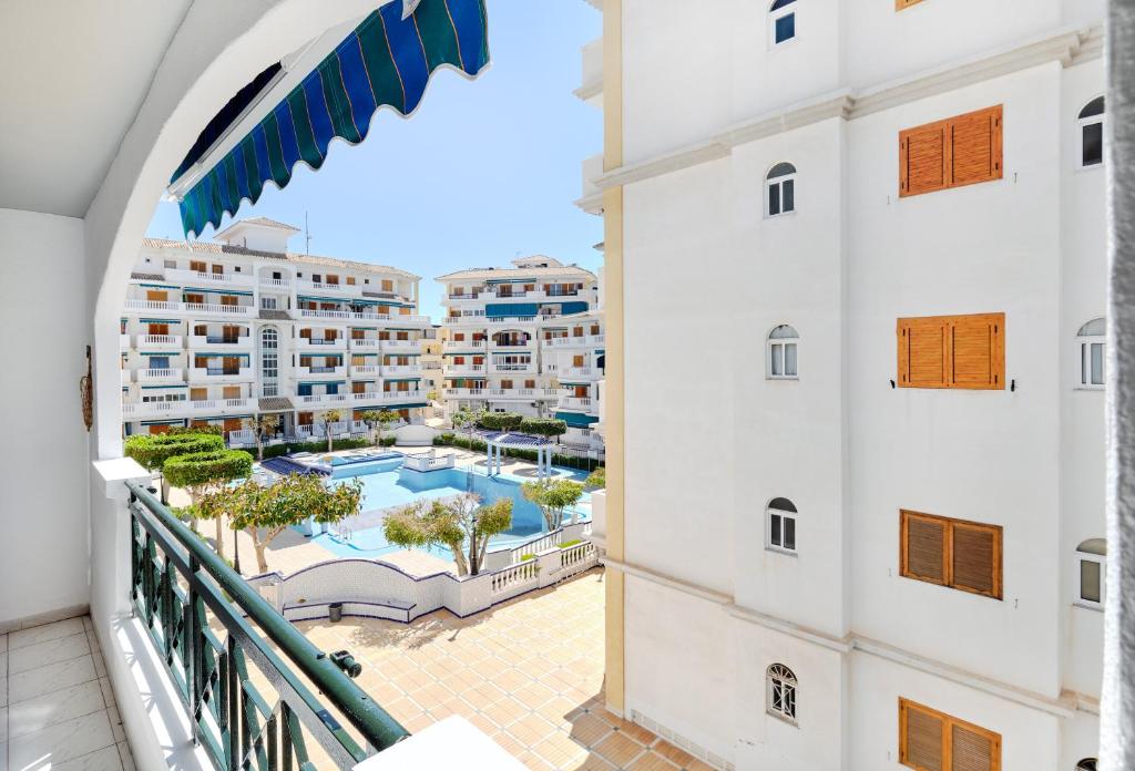 El apartamento está equipado con 2 dormitorios, 1 baño, ropa de cama, toallas, TV de pantalla plana, zona de comedor, cocina totalmente equipada y balcón con vistas a la piscina.
