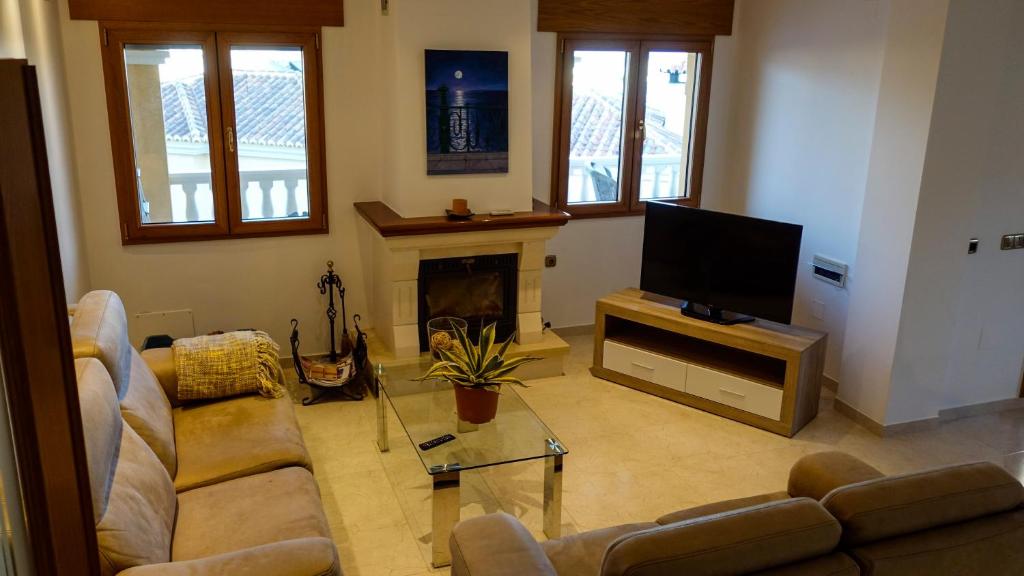 Villa Borja ***** La cuenta con unas vistas exclusivas del mar y de la montaña, una piscina para uso exclusivo, y un jardín tropical con algunos arboles frutales, ecológicos (manzanas, mandarinas y limones, tiene también aguacate y platanera, pero tardaran en dar fruto estos dos últimos un par de años. Tiene capacidad para 16 adultos, 2 bebes de cuna y 2 niños de 5 a 10 con dos sillones convertibles en cama indiviual, que se pueden adaptar a cualquiera de los 7 dormitorios, incluso a los 2 salones. 2 sillas de paseo para bebes, 2 tronas. La Villa cuenta con 2 cocinas terrazas a diferentes alturas, el salón de planta baja junto a la piscina, cuenta con bodega, barra de bar y cocina, que permite convertir dicho espacio en un magnifico centro de reunión. Todos los espacios cuenta con aire acondicionada, mediante bomba de calor y frío que en invierno junto a 2 chimeneas y calefacción eléctrica permite calentar suficientemente la Vivienda, y en verano permite disfrutar de temperatura muy agradable, estoy unido a un mobiliario totalmente nuevo, adquirido en 2019, las dos cocinas están totalmente equipadas, disponen de aquaService, ofreciendo agua fría y caliente