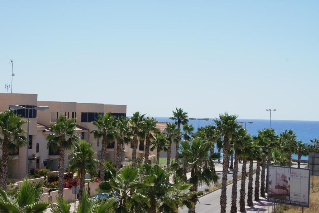 This is a beautiful modern townhouse with 3 bedrooms, main family bathroom with jacuzzi, 2nd family bathroom and a downstairs toilet. The house is furnished to a very high standard and has air conditioning throughout. It is very spacious accommodation with heating in the winter, terrace, balcony, patio and a roof top solarium. There is a communal pool and jacuzzi. The house is in a prime location for walking to the beautiful beaches, bars and restaurants as well as visiting other tourist attractions :-Water Parks, Go - Karting, Golf breaks, Spanish Markets, Shopping Complexes and Marinas.Size: Sleeps 5, (one master bedroom and a second bedroom with a single bed and bunk beds.)