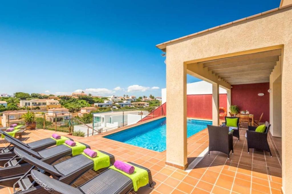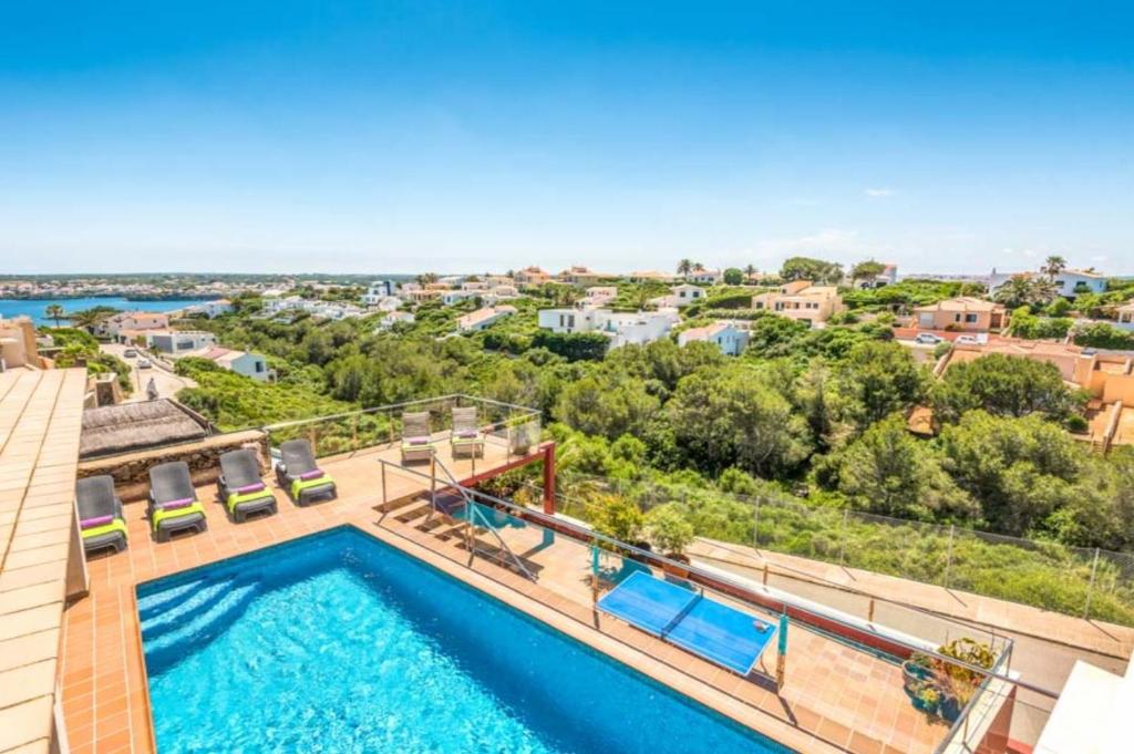 Boasting air-conditioned accommodation with a private pool, pool view and a balcony, VILLA Cala Llonga is situated in Cala Llonga. This villa features free WiFi, a seasonal outdoor swimming pool, as well as a terrace.