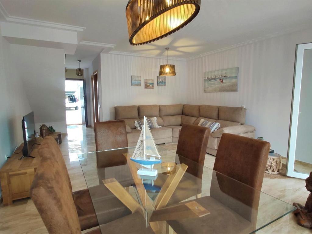 La casa cuenta con aire acondicionado, 3 dormitorios, sala de estar, cocina totalmente equipada con nevera y cafetera y 2 baños con ducha y secador de pelo. Se proporcionan toallas y ropa de cama.