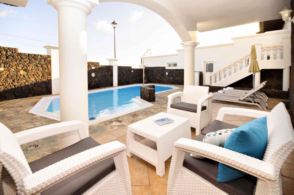 El Nazaret Villa Sleeps 8 with Pool, situado en Nazaret, ofrece piscina exterior y vistas a la piscina. El alojamiento está a 8 km de Costa Teguise y