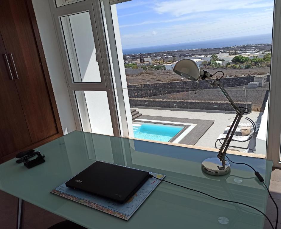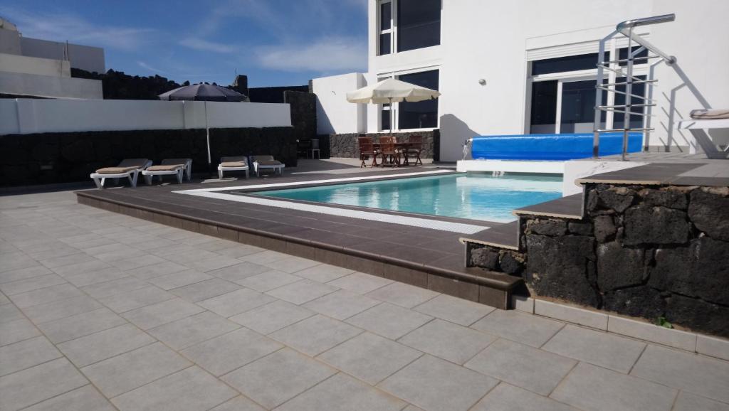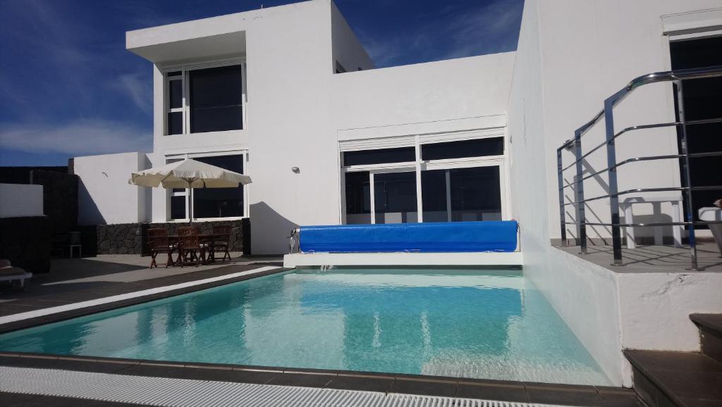 Nuestra Villa se encuentra en un pueblo muy tranquilo del municipio de Tías, donde también se encuentra la zona turística de Puerto del Carmen, nuestra Villa cuenta con una piscina que tiene unas medidas de 7m x 5m y 1.45m de profundidad, tienen la opción de climatizada para los meses de invierno abonando un pequeño plus por día. Nuestra Villa cuenta con unas vistas espectaculares hacia el océano Atlántico tanto desde el salón, comedor y desde el dormitorio principal con acceso también a la piscina y terraza. Gracias a la forma de nuestra villa en esos días de viento que puedan haber en la isla, desde la zona de la terraza-piscina no lo apreciarán y podrán disfrutar de ese baño o de esa tranquilidad tumbados en las hamacas tomando esos rayos de sol tan deseados. En definitiva si lo que buscan es tranquilidad y disfrutar de sus vacaciones cómodos y relajadamente nuestra Villa Marandreu no les decepcionará.. Les esperamos, estamos a vuestro servicio, cualquier duda por favor enviarnos e-mail y gustosamente les atenderemos. Araceli y Juanfer
