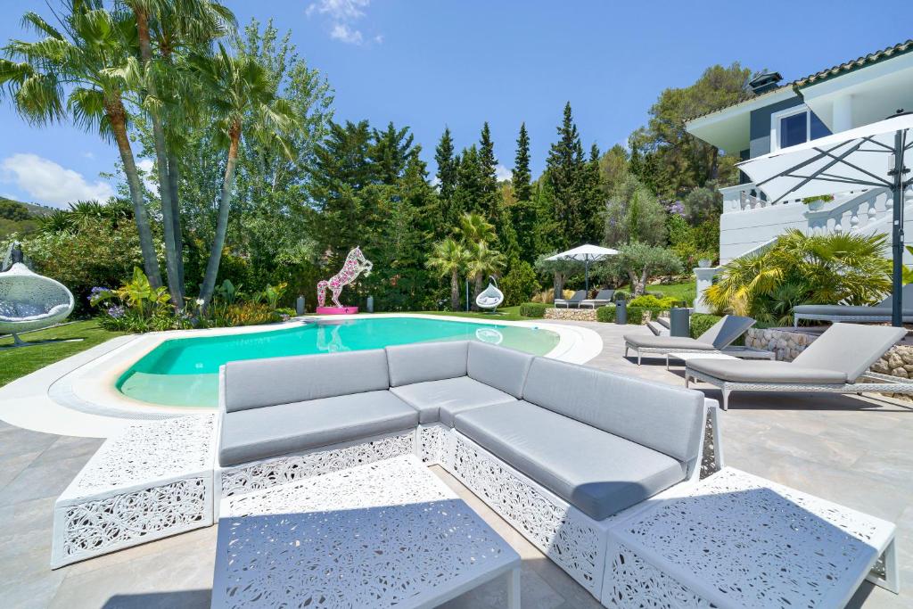 La Villa con piscina en son serra ofrece alojamiento con balcón y WiFi gratuita a pocos pasos del parque Rancho Grande de Mallorca. Todos los alojamie
