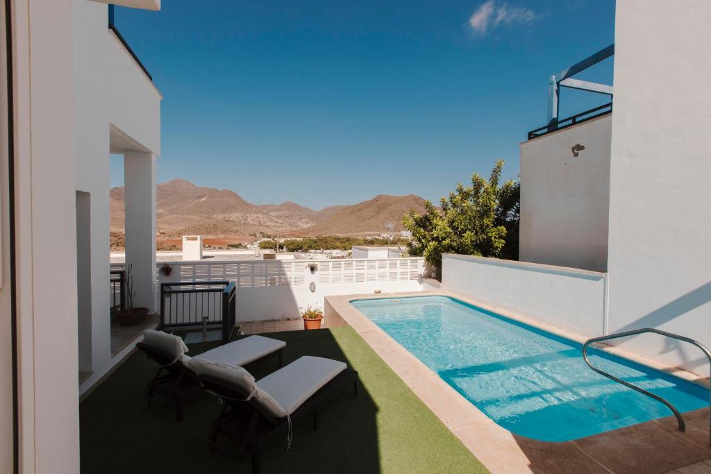 La Luminous Villa with terrace and salt water pool se encuentra en Níjar, a menos de 1 km de la playa de San José y a 2,1 km de la playa de los Genove