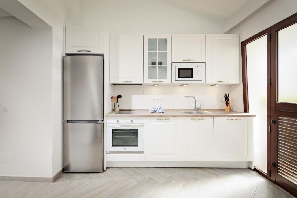 Apartamento con balcón con vistas al jardín, TV vía satélite, cocina bien equipada con lavavajillas, microondas y nevera y baño con ducha y secador de pelo.