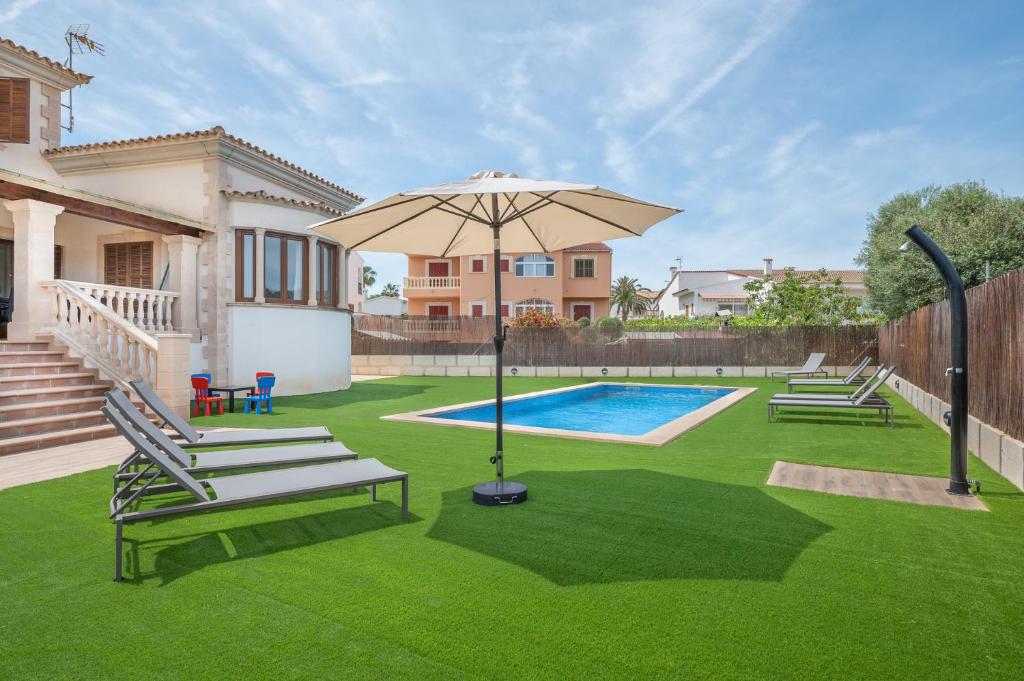 El Cas Fraus ofrece vistas a la piscina y alojamiento con terraza y hervidor de agua a unos 600 metros de la playa de Sa Coma. Esta villa cuenta con piscina privada, jardín y aparcamiento privado gratuito.