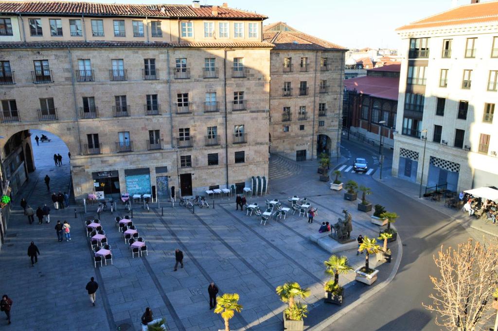 Espectacular apartamento entero totalmente exterior reformado recientemente situado en inmejorable ubicación, en el mismo Centro Histórico de la ciudad, a 50 pasos de la Plaza Mayor y a menos de 500 metros de los edificios más emblemáticos de la ciudad: la Clerecía, Catedrales, Palacio de Monterrey, Universidad, Casa de las Conchas, Convento de San Esteban, Casa Lis, Huerto de Calixto y Melibea o el Palacio de Congresos. Edificio con ascensor y equipado con todo lo necesario, aire acondicionado y WiFi fibra incluido. DORMITORIO Independiente y salida a balcón, cama de matrimonio compuesta de cama de 150x135 cm con un armario empotrado grande con perchas. SALÓN Muy luminoso, cuenta con un sofá cama, mesa baja, TV de 32 pulgadas, mesa de comedor, 4 sillas y mueble. Hay un armario empotrado y otro a la entrada de la vivienda. COCINA De diseño y completamente equipada (frigorífico, lavadora, horno, lavavajillas, microondas, tostadora, cafetera eléctrica con cápsulas y azúcar, vitroceramica y campana extractora) y con menaje. También hay plancha, tabla de planchar y tendedero. BAÑO Con plato de ducha, secador de pelo, toallas, champú, gel individuales y botiquín.