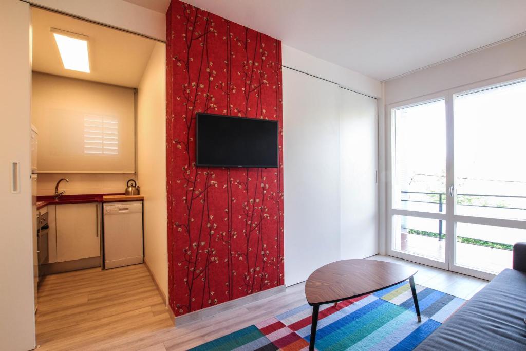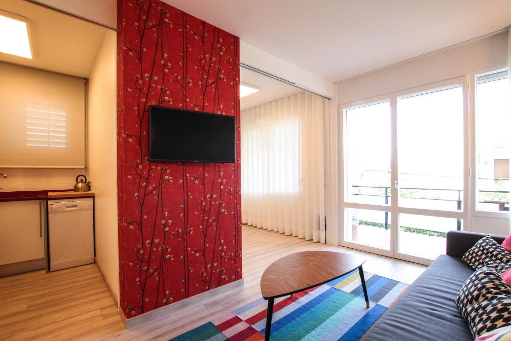 El apartamento consta de un espacio abierto con zona de estar, zona de dormitorio y zona de cocina. Incluye 1 baño.