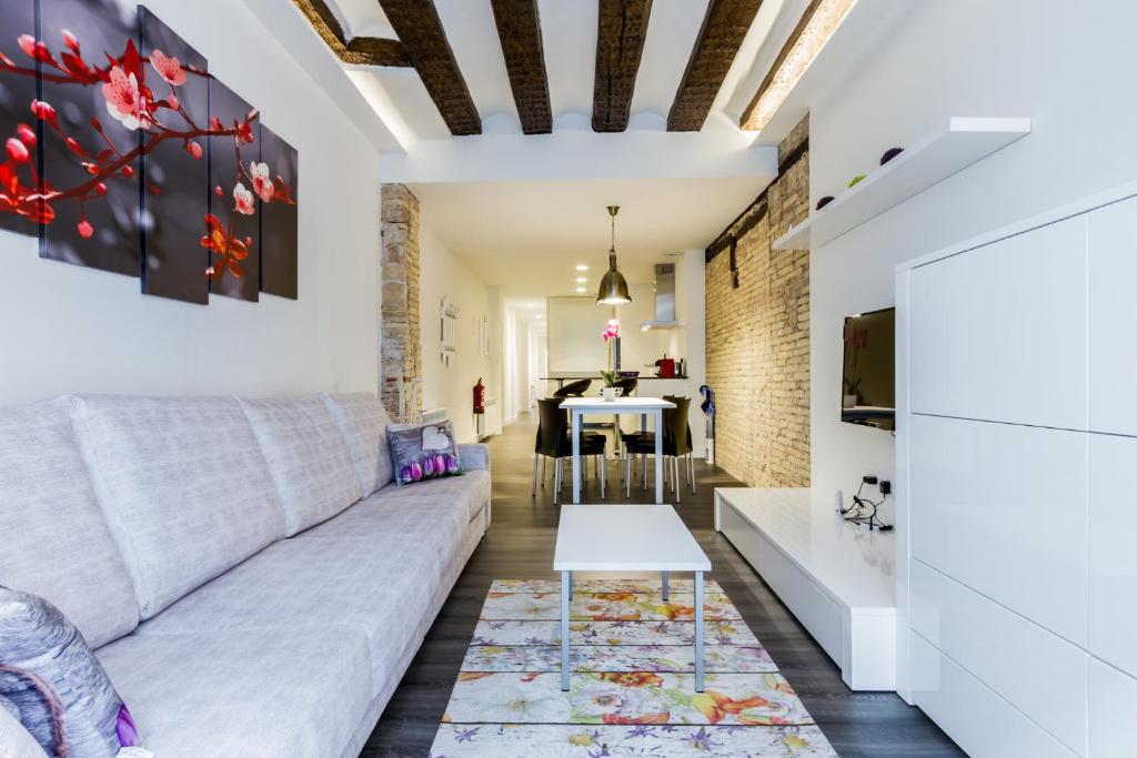 El apartamento ha sido completamente reformado, incluyendo todas las ventajas de una moderna y cómoda distribución con cocina sala de estar "open concept", pero a la vez manteniendo la esencia de las viviendas del casco antiguo de Pamplona, sacando otra vez a la luz, parte de la piedra del edificio original, las vigas, techos en bovedilla... todo ello dentro de una atmósfera creada con luces indirectas, que crea una sensación de calidad y acogida, inigualable
