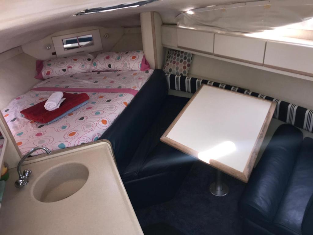 El barco consta de 1 dormitorio independiente, 1 baño con artículos de aseo gratuitos, zona de estar y sala de estar. También incluye TV de pantalla plana.
