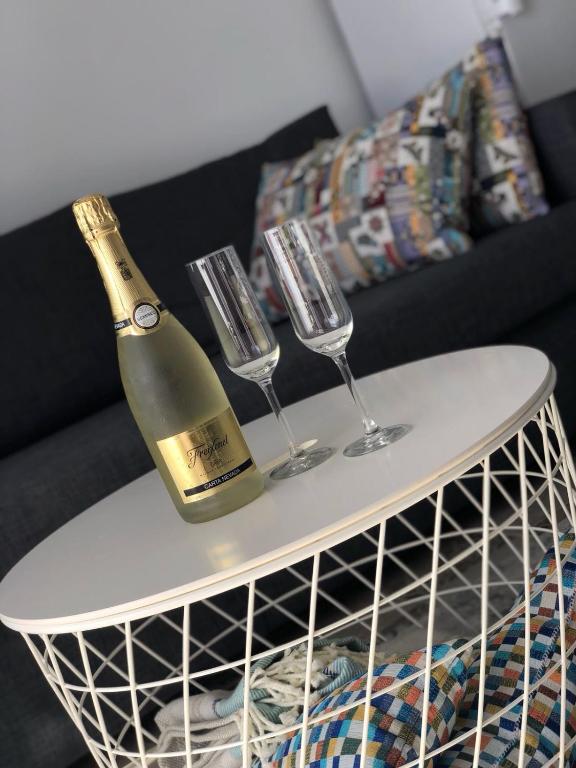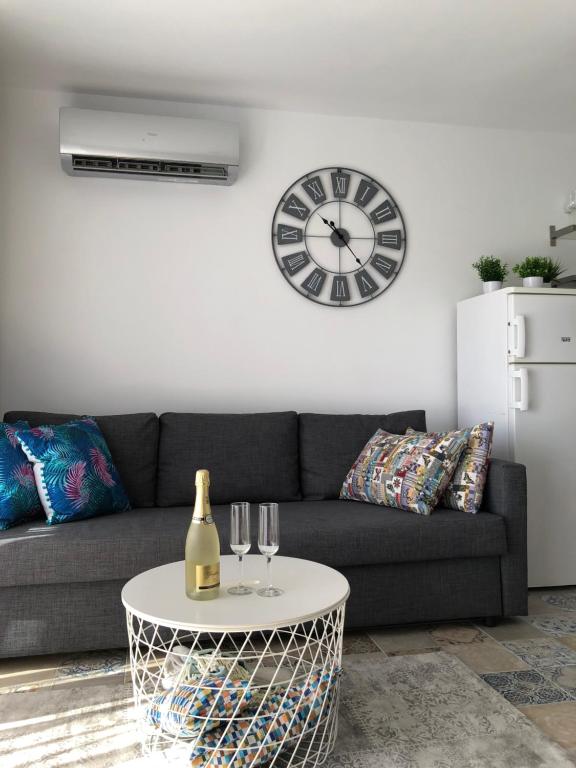 Este apartamento cuenta con conexión WiFi gratuita, TV de pantalla plana vía satélite, lavadora y cocina con microondas y nevera.